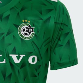 Pre-match shirt from the 25/26 collection by adidas and Maccabi Haifa. Recycled polyester fabric combined with AEROREADY technology ensures optimal sweat evaporation during warm-up and stretching before the game, during training and on hot days when you need to show your fanhood.